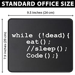 - Optimize your coding setup with this programmer mouse pad tailored for software developers, coders, and tech enthusiasts. designed for speed and precision, the soft fabric surface allows for seamless navigation whether you are debugging code or developing new applications. the reliable non-slip rubber backing ensures the pad remains stationary, even during rapid mouse movements. this geeky desk accessory not only enhances your comfort but also adds a bit of personality to your workstation, making it a perfect gift for computer scientists, web developers, and it professionals who spend hours at the computer.