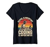Womens School is Important But Coding is Importanter Programmer V-Neck T-Shirt