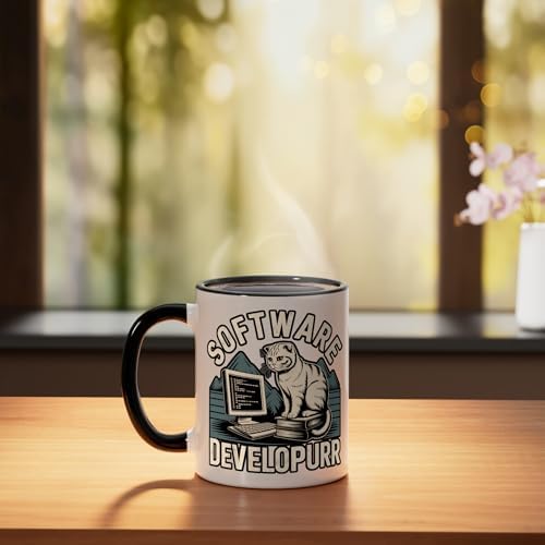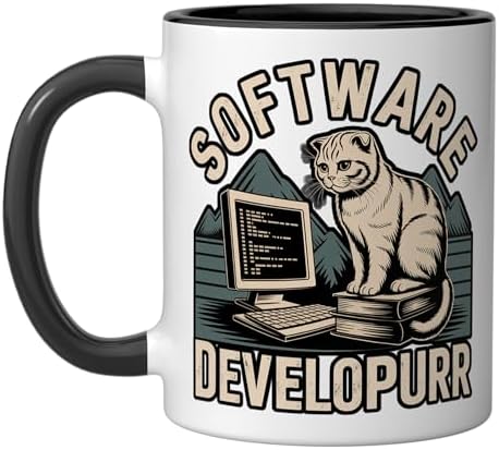 Software Developurr Cat Coding Feline |- Ceramic Mug, Black/White
