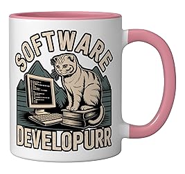 Software Developurr Cat Coding Feline |- Ceramic Mug, Pink/White