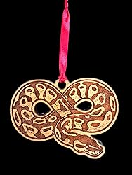 - Ball Python Ornament Solid Cherry Wood Christmas Snake. Made In USA Gift. 4" x 3" Width: 4 inches Height: 3 inches Depth: .22 inches Each is cut from sustainable wood products and the back has a natural wood finish. This elegant ornament showcases laser-engraved designs that add a touch of charm to any Christmas tree. Here are the key features of our Made in the USA ornament: Premium Cherry Wood: Our round wood ornament is crafted from high-quality cherry wood, known for its durability and beautiful grain patterns. This ensures that each ornament is unique and made to last, becoming a cherished keepsake for years. Laser-Engraved Details: The laser-engraved designs on our wood ornament are meticulously crafted, capturing intricate details and adding a touch of elegance. The precision of laser engraving ensures sharp and clear artwork, enhancing the visual appeal of the ornament. Hanging Ribbon: Each ornament has a coordinating ribbon, allowing easy and versatile hanging options. You can effortlessly adorn your Christmas tree, wreaths, and garlands or use it as a decorative accent on doorknobs or hooks. Decorative Gift Bag: We believe in delivering a complete gifting experience. That's why each ornament comes beautifully packaged in a decorative gift bag, making it ready to gift or store safely. The gift bag adds an extra touch of elegance, making it perfect for special occasions and celebrations. Made in the USA: We take pride in crafting our wood ornaments right here in the USA. By supporting our product, you receive a high-quality item, contribute to local craftsmanship, and support American artisans. Elevate your holiday decor or give a heartfelt gift with our Wood Ornament. Made from premium cherry wood and laser-engraved with exquisite designs, it is a perfect addition to your seasonal festivities. It's a thoughtful and complete package with a versatile hanging ribbon and a decorative gift bag.