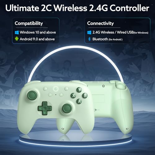 - 𝐔niversal 𝐂ross-𝐏latform 𝐂ompatibility & 𝐈ntelligent 𝐂onnection: The 8BitDo Ultimate 2C Wireless Controller seamlessly supports Windows 10 and above, plus Android 9.0 and above, making it the perfect gaming companion for PC and mobile enthusiasts. Features intelligent mode switching with a dedicated button that automatically adapts between 2.4G and wired connections for Windows gaming, while utilizing stable Bluetooth connectivity for Android devices, ensuring optimal performance and zero compatibility issues across all your favorite gaming platforms.