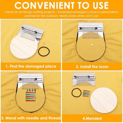 - 4.Versatile Mending Tool: Whether fixing fine knits or heavy denim, this weaving loom kit adapts to various fabrics. Choose from 14, 21, or 28 hooks to match the yarn weight and repair size needed.