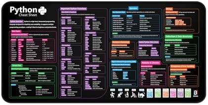 - Python Cheat Sheet Programming Reference at Your Desk – Designed like a clean, easy‑to‑read Python cheat sheet, this extended mouse pad keeps essential concepts, syntax, and logic visible while you work. A practical study aid for learning Python, practicing python coding, or supporting any Python crash course style workflow.