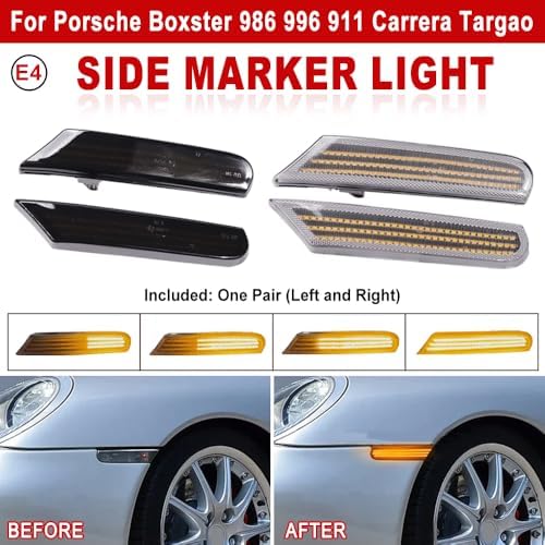 Hacreyatu 2Pcs Dynamic LED Car Side Marker Sequential Turn Signal Blinker Light For Porsche Boxster 986 996 911 Carrera Targa 1996-2004 (Transparent)