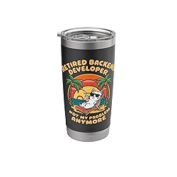 Backend Developer Programming Coder Software Programmer. This Retired Backend Developer Not My Problem Anymore is for men and women into programming. Great for a backend developer expert with with database. Cool for a retiring back end developer. Are you into software engineering? Are you a software engineer expert in programming languages? Then this programming design is for you. Awesome programmer quotes for a computer programmer or it specialist into website development. Dual wall insulated: keeps beverages hot or cold Stainless Steel, BPA Free Leak proof lid with clear slider