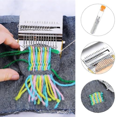 - DIY WEAVING REPAIR TOOL FOR MENDING JEANS SOCKS: As small weaving tools for beginners, this kit enables designing unique patches or decorative stitches, and repairing worn jeans, socks, sweaters, scarves to extend garment life