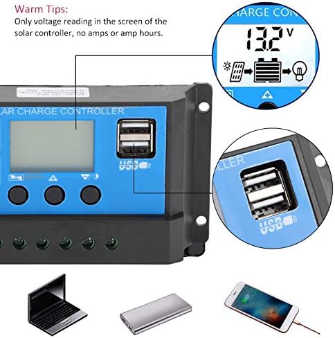 30A LCD Solar Charge Controller with 12V 24V Automatic Identification, 4 Stage PWM Charging Management, Adjustable Parameters, Built in Industrial Microcontroller, Durable Plastic