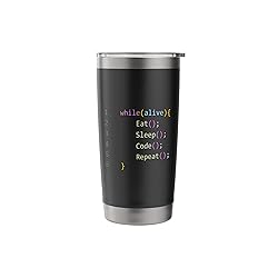 "Eat Sleep Code Repeat" This is a funny developer saying for programmer who is your friend, girlfriend, mom, dad, son, daughter, father, mother, brother, sister, uncle... Great for everyone loves programming languages humor, java, javascript, html, php... Are you looking for a surprise for computer programmer? Grab this "Eat() Sleep() Code() Repeat()" developer outfit for web developer, software developer, game developer, website developer, app developer, front end, back end or full stack developer... Dual wall insulated: keeps beverages hot or cold Stainless Steel, BPA Free Leak proof lid with clear slider
