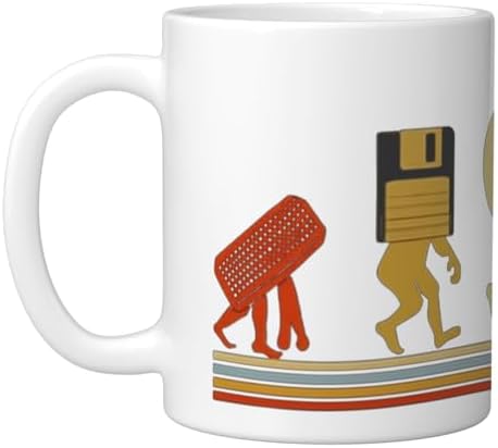 Funny Evolution Data Storage Retro Tech Computer Nerd Geeks Ceramic Mug, White