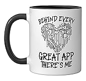 Software Engineer Computer Programmer Programming Code. This Behind Every Great App There's Me is for men and women working as a software engineer. Perfect programming clothes for a computer expert who enjoys programming and is into software development. This programming design is for a programmer expert in data structures and algorithms. Perfect for a software developer into computer frameworks and software testing. Ideal for a computer programmer. 11-ounce ceramic mug is dishwasher and microwave-safe, lead and BPA free Features glossy finish with accent colors on interior, handle, and rim of two-tone designs