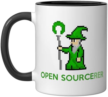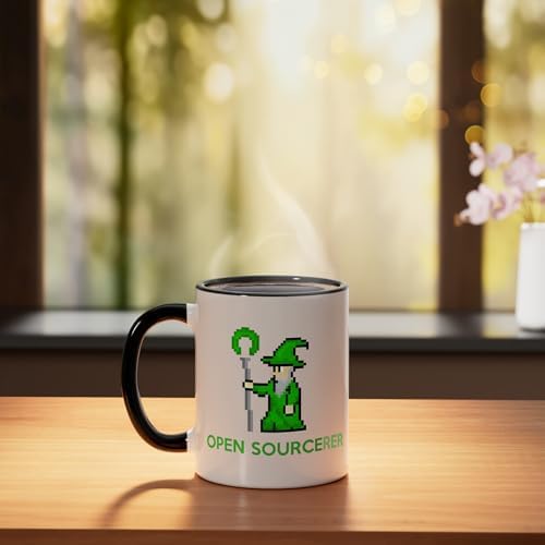 Open Sourcerer Programmer Ceramic Mug, Black/White