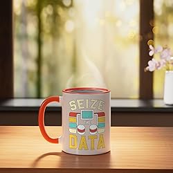 You are looking for an awesome data analyst design? Then is this funny computer science, data analysis or data scientist design the right one. It's a great idea for data analysts who love their job. Wear it proudly to work or in your free time. Get this. This funny data analyst design for women and men who love their coder, computer science or programming job. Show that you are a proud data analyst. On the data analyst's motive is the quote Seize The Data. 11-ounce ceramic mug is dishwasher and microwave-safe, lead and BPA free Features glossy finish with accent colors on interior, handle, and rim of two-tone designs