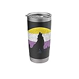 Howling Wolf in Front of a Moon with Non-binary Colors to support equality and Love during pride Month Dual wall insulated: keeps beverages hot or cold Stainless Steel, BPA Free Leak proof lid with clear slider