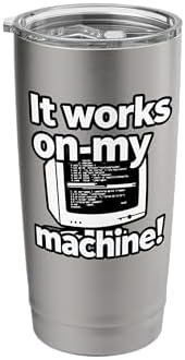 - Features the classic developer excuse "It works on my machine!" with a retro computer monitor graphic. Ideal for software engineers, coders, computer science majors, and IT professionals who know the struggle of local environments versus production.