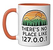 Funny programmer joke saying there's no place like 127.0.0.1 ( home ). Perfect for programmers, coders, and software developers who enjoy a humorous take on debugging, coding, and tech life. A fun way to show passion for technology and computer science. Great for anyone in the tech world, whether engineers, students, or IT professionals who appreciate clever designs that highlight coding humor and spark conversation. 11-ounce ceramic mug is dishwasher and microwave-safe, lead and BPA free Features glossy finish with accent colors on interior, handle, and rim of two-tone designs