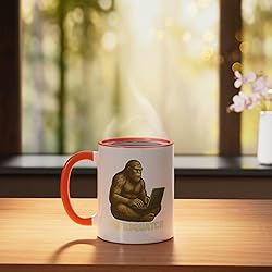 Vintage Codesquatch design blends Bigfoot and Sasquatch myth with binary brilliance. Perfect for coders, software engineers, and cryptid-loving tech geeks. Great for programmers, IT pros, and anyone who thrives in dark mode. Ideal for hackathons and tech meetups. 11-ounce ceramic mug is dishwasher and microwave-safe, lead and BPA free Features glossy finish with accent colors on interior, handle, and rim of two-tone designs