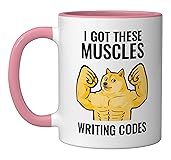 Funny programmer shiba inu saying I got these muscles writing codes. Perfect for programmers, coders, and software developers who enjoy a humorous take on debugging, coding, and tech life. A fun way to show passion for technology and computer science. Great for anyone in the tech world, whether engineers, students, or IT professionals who appreciate clever designs that highlight coding humor and spark conversation. 11-ounce ceramic mug is dishwasher and microwave-safe, lead and BPA free Features glossy finish with accent colors on interior, handle, and rim of two-tone designs