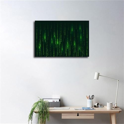 Wall art decoration- Matrix Code Digital Green Binary Code Future Technology poster HD canvas print painting suitable for room living room Bar gym home decor (16x24inch-Unframed)