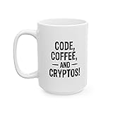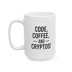 - Awaken your inner coder with our 'Code, Coffee, and Cryptos' ceramic mug Crafted for those who live and breathe technology, this delightful coffee cup combines style with functionality. The bold black typography stands out against the crisp white background, ensuring your morning ritual is as stimulating as your favorite brew. Whether you’re tackling deadlines or deciphering blockchain, this mug is designed to elevate your coffee experience. Made from durable, BPA and lead-free ceramic, it's available in two convenient sizes—11oz and 15oz—to perfectly match your caffeine cravings. With a comfortable C-handle and glossy finish, this mug is a joy to hold and behold. Plus, it’s microwave and dishwasher-safe, offering convenience for your busy lifestyle. Ideal for gifting on occasions like birthdays, holidays, or as a motivational desk accessory for tech enthusiasts, this mug is more than just a beverage holder; it’s a statement of your passion. Sip your favorite coffee, tea, or hot chocolate with confidence Add it to your cart now and make every sip a celebration of coding and innovation