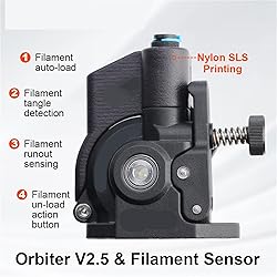 - TPU flexible filament can be printed.Shore hardnessnot less than 85AWhat's in the box: Orbiter Extruder V2.5 Orbiter Filament Sensor x1 OS2 Nylon SLS Printing(only compatible with orbiter v2.0 extruder) x1 SS304 M3 Nut x2 SS304 M3*20 Screws x2 SS304 M3 Washer x4 SS304 D6 Ball x2 Wiring harnes x1 ========== High-concerned chemical : None Model Number : LDO Orbiter Extruder V2.5 Item Type : Extruder