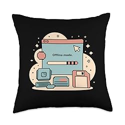 Offline Mode Pixel Tech Nerd Retro Computer Throw Pillow