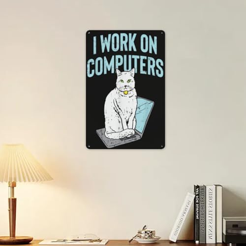 Funny Cat Tech IT Support Computer Engineer Programmer Retro Wall Art Plaque Kitchen Living Room Bedroom Home Decor for Man Cave Garage Bar Decoration 12x8 Inch