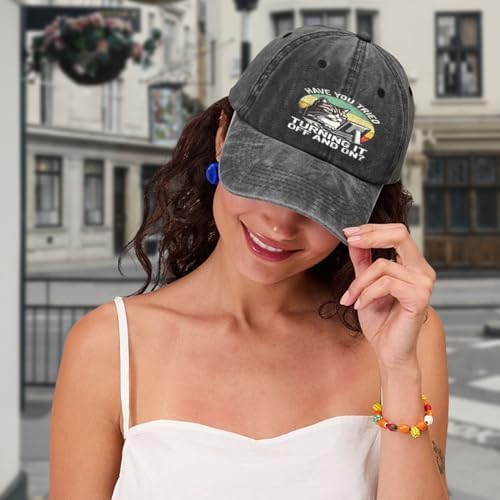 Funny Cat Tech IT Support Computer Engineer Programmer Retro Baseball Cap Retro Adjustable Sun Dad Gift Hats for Men Women