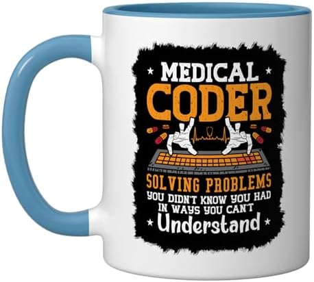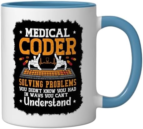 Medical Coder Solving Problems Coding Icd Code Programmer Ceramic Mug, Blue/White