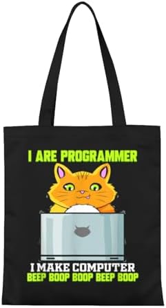 Funny Cat Tech IT Support Computer Engineer Programmer Retro Canvas Tote Bag Ever Ideal Holiday Gifts For Parent