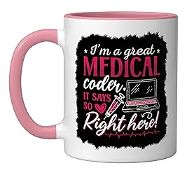 You are looking for an awesome coder outfit? Then is this funny medical coder or medical coding design the right one. It's a great idea for assistant or programmer who love their job. Wear it proudly to work or in your free time. Get this now. This funny medical coder design for women and men who love their coding and programmer job. Show that you are a proud medical coder. On the medical coder motive is the quote I'm A Great Medical Coder It Says So Right Here. 11-ounce ceramic mug is dishwasher and microwave-safe, lead and BPA free Features glossy finish with accent colors on interior, handle, and rim of two-tone designs