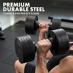 ONE-SECOND ROTATING ADJUSTMENT - Switch between weights in just one second with the quick-adjust rotate-lock mechanism. Perfect for fast-paced workouts without interruption. Ideal for dumbbells adjustable weight and home training efficiency SPACE-SAVING COMPACT DESIGN - This adjustable dumbbell set replaces bulky racks with one compact unit. Save space while gaining full-range performance. Great for any adjustable dumbells setup or dumbbell sets for home gym training sessions PREMIUM GRIP AND STABILITY - Ergonomic textured aluminum handle ensures anti-slip control and comfort. The double-lock system keeps plates secure during workouts. Trust this flat, balanced build in your adjustable dumbbell routine every time DURABLE CAST IRON BUILD - Heavy-duty construction includes cast iron plates with a protective coating that prevents floor damage. Built to last for years of training. A reliable choice for adjustable weights dumbbells set strength building FULL-BODY VERSATILE TRAINING - Great for curls, shrugs, presses, lunges, and more. Designed for beginners to advanced athletes. This adjustable dumbbell set empowers serious results in a compact, powerful adjustable dumbbells solution