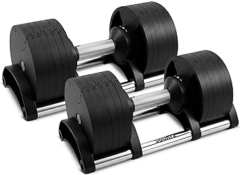 - The SQUATZ 45 lb adjustable dumbbell set brings pro‑level training into any home gym with a fast, intuitive one‑second weight‑change system. Built for versatility, this adjustable dumbbells design replaces an entire rack, giving you the freedom to progress smoothly, from light toning to intense strength sessions. Each adjustable dumbbell includes a durable aluminum handle with diamond‑knurl texture, ensuring a firm and controlled grip during every movement. With secure double‑locking engineering, these adjustable dumbells keep their cast‑iron plates firmly in place, even during high‑energy lifts and fast-paced drills. Ideal for curls, lunges, presses, and full‑body routines, this adjustable weights dumbbells set supports beginners and advanced lifters alike. The included storage base keeps your space neat while simplifying quick weight selection, making it a top choice for dumbbell sets for home gym setups. Whether you're targeting muscle building, conditioning, or everyday fitness, these dumbbells adjustable weight options deliver reliable performance. Engineered for durability, stability, and safe training, this compact system provides the strength of multiple weights in one smart footprint. The SQUATZ adjustable dumbbell set elevates your workout while saving space, time, and effort in every session.