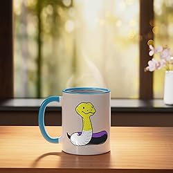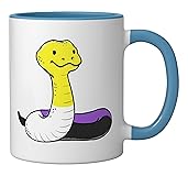 Snake nonbinary pride. Are you looking for a nonbinary design for a proud nonbinary pride person celebrating Nonbinary Pride Day? Then grab this Snake nonbinary pride design which shows a snake in nonbinary flag colors. 11-ounce ceramic mug is dishwasher and microwave-safe, lead and BPA free Features glossy finish with accent colors on interior, handle, and rim of two-tone designs