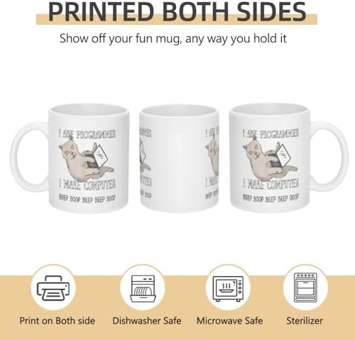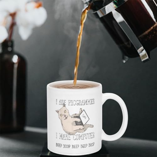 Cat Tech IT Support Computer Engineer Programmer Retro Ceramic Cup Tea Mug 11 Ounce Gifts For Unisex