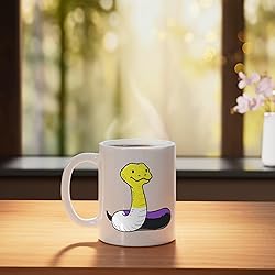 Snake Nonbinary Pride 11-ounce ceramic mug is dishwasher and microwave-safe, lead and BPA free Features glossy finish with accent colors on interior, handle, and rim of two-tone designs