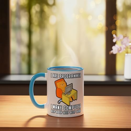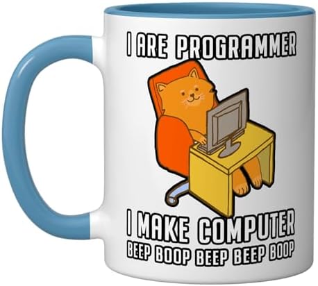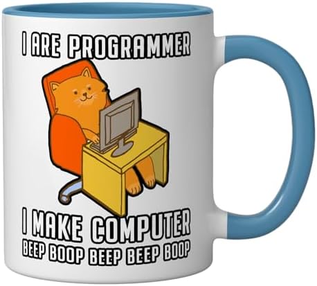 Funny I Are Programmer Coding Software Engineer Nerd Cat Ceramic Mug, Blue/White