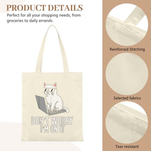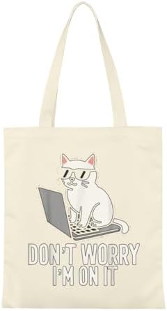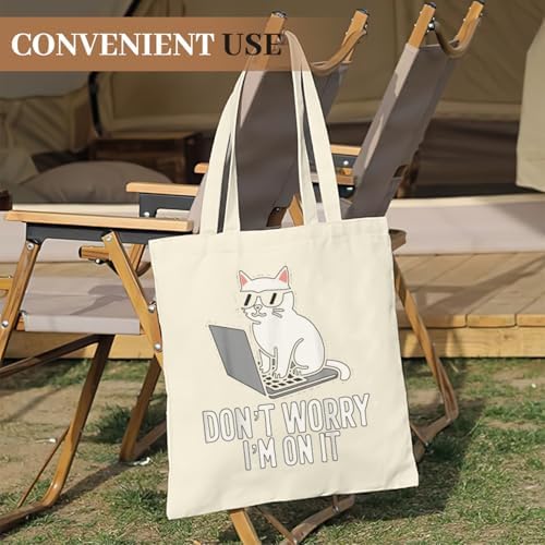Cool Funny Cat Tech IT Support Computer Engineer Programmer Retro Tote Bag Totes Canvas Bags For Women Men