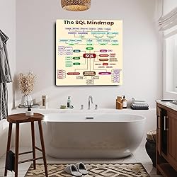 The SQL Mindmap Poster Concepts Commands Guide Database Programming Reference Canvas Painting for Living Room Bedroom Decor 12x12inch(30x30cm) Frame-style