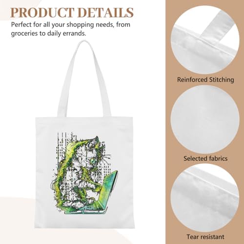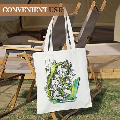 Cool Funny Cat Tech IT Support Computer Engineer Programmer Retro Tote Bag Totes Canvas Bags For Women Men
