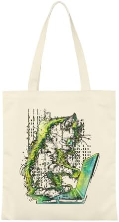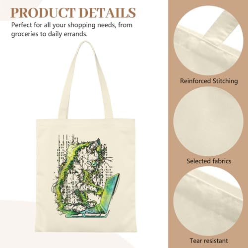 Cool Funny Cat Tech IT Support Computer Engineer Programmer Retro Tote Bag Totes Canvas Bags For Women Men