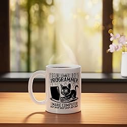 Programmer Cat Kitty Meow Animal Pet Computer Programming. This is for a cat owner or a cat lover who likes to debug and write codes. A funny cat clothes for a cat mom or a cat dad into computer programming. Searching for a cute programmer cat design for a cat lady or a cat whisperer who is a computer programmer? Are you a cat breeder expert in software development and programming? Then this is for you. 11-ounce ceramic mug is dishwasher and microwave-safe, lead and BPA free Features glossy finish with accent colors on interior, handle, and rim of two-tone designs