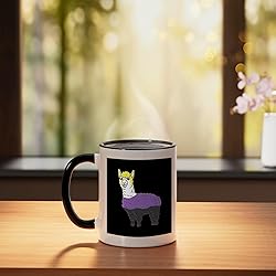 Nonbinary Alpaca Nonbinary Pride 11-ounce ceramic mug is dishwasher and microwave-safe, lead and BPA free Features glossy finish with accent colors on interior, handle, and rim of two-tone designs