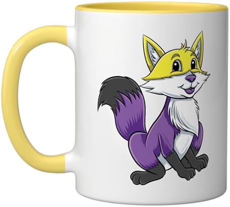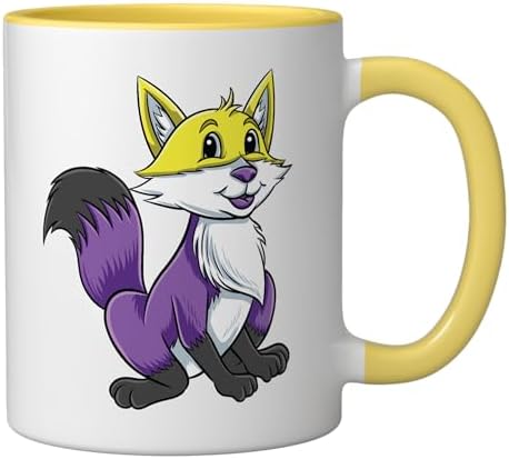 Nonbinary Pride Fox Nonbinary Pride Flag Ceramic Mug, Yellow/White