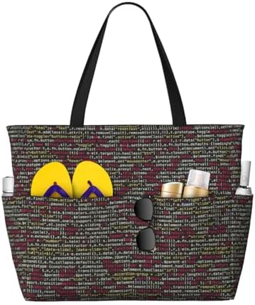Our oversized Programmer Programming Code Print beach tote bag is a versatile companion for various occasions, including family beach time, pool parties, picnics, and shopping. It effortlessly adapts to your needs, doubling as a travel bag, gym bag, pool bag, sports bag, and even a carry on luggage handbag for traveling. Notably, its compact and lightweight design allows for easily folded and conveniently stored in your backpack or luggage case.