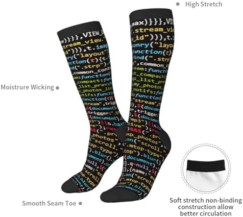 Programmer Computer Code Funny Socks With, Soft Breathable Socks For Men & Women 1 Black