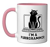 Programmer Cat Kitty Meow Animal Pet Computer Programming. This I'm A Purrgrammer is for a cat owner or a cat lover who likes to debug and write codes. A funny cat clothes for a cat mom or a cat dad into computer programming. Searching for a cute programmer cat design for a cat lady or a cat whisperer who is a computer programmer? Are you a cat breeder expert in software development and programming? Then this is for you. 11-ounce ceramic mug is dishwasher and microwave-safe, lead and BPA free Features glossy finish with accent colors on interior, handle, and rim of two-tone designs