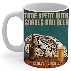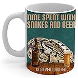 Gray Ball Python And Beer Coffee Mug White 11Oz Time Spent With Pet Is Never Wasted Funny Quote Ceramic Cup Gifts for Ball Python Snake Lovers
