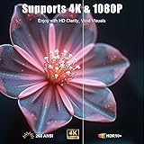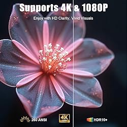 【Smart Projector Built in Apps】Powered by a built-in Android 13.0 system, this smart projector comes with a streaming app that pops up a variety of applications by simply connecting to WiFi, including support for Prime Video, Hulu, YouTube, Disney+, Apple TV and Lives and more. ②【Fast Dual-band 6G WiFi & Bluetooth 5.2】This projector with wifi and bluetooth supports iOS/Android system screen mirroring, and the 6G wifi frequency band transmission is as fast as lightning, saying goodbye to stuttering delay. Bluetooth 5.2 chipset is intelligently anti-interference, and the stable connection within 10M is not interrupted. 【Fast Dual-band 6G WiFi & Bluetooth 5.2】This projector with wifi and bluetooth supports iOS/Android system screen mirroring, and the 6G wifi frequency band transmission is as fast as lightning, saying goodbye to stuttering delay. Bluetooth 5.2 chipset is intelligently anti-interference, and the stable connection within 10M is not interrupted. 【Auto Adjust Projection】Say goodbye to the tedious manual settings, the home theater projector uses automatic keystone correction function and screen alignment to instantly adapt to your spatial angle. Scale as you like, free proportion: supports 4:3/16:9 aspect ratio switching, can achieve 50-100% Zoom, ±15°Keystone Correction, accurately match your PPT, movies, and games. 【Ultra Screen & 1080P & 4K Support】Supports 35" exquisite small screen to 150" large screen, making the bedroom and living room a movie theater in seconds, meeting most of your space needs. The movie projector uses Eye-protection technology to reduce blue light, keeping your eyes comfortable and fatigue-free. It supports 1080P & 4K decoding, delivering crisp, clear images and vibrant colors for a cinema-level visual experience. 【Super Compatibility】The bluetooth projector with 5W speakers, independent bass diaphragm presents cinema-level surround sound, and can support linking Bluetooth to switch external independent audio, allowing wider sound coverage. Built-in HDMI, AV and USB ports, compatible with TV Stick/Xbox, DVD player, PS3/4/5, PC, smartphone, laptop, supports watching movies, parties, outdoor activities, football games, lives and more.