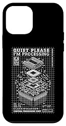 Quiet please I'm processing. Funny technical diagram of pc central processing unit CPU programming computer scientist builder tech computers graphic design. Funny CPU, processor, I'm processing, geek, coding, coder, pc gamer, tech support, programmer and computer builder, user, scientist gifts and network engineer gift ideas for programmers, engineers, coders, students, men, women and kids. Two-part protective case made from a premium scratch-resistant polycarbonate shell and shock absorbent TPU liner protects against drops Printed in the USA Easy installation